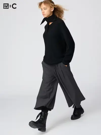 ガウチョパンツのトレンドから派生したアイテムで、特徴は膝下からふくらはぎ程度の短めの丈です。スカンツよりも裾が大きくふんわりと広がり、よりスカートらしいフェミニンなシルエットを描きます。