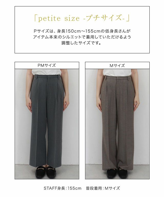 Pierrotの最大の強みは、低身長者向けの専用ライン「Pサイズ」シリーズの存在です。特にブランドの看板商品でもあるテーパードパンツは、股下の長さが選べるなど、驚くほど豊富なサイズ展開を誇ります。