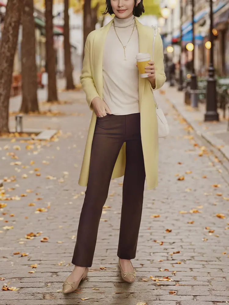 パンプスでエレガントに決めるのはもちろん、フラットシューズでもバランスが崩れないため、流行に関係なく長く愛用できる、大人の女性のための究極のベーシックと言えるでしょう。