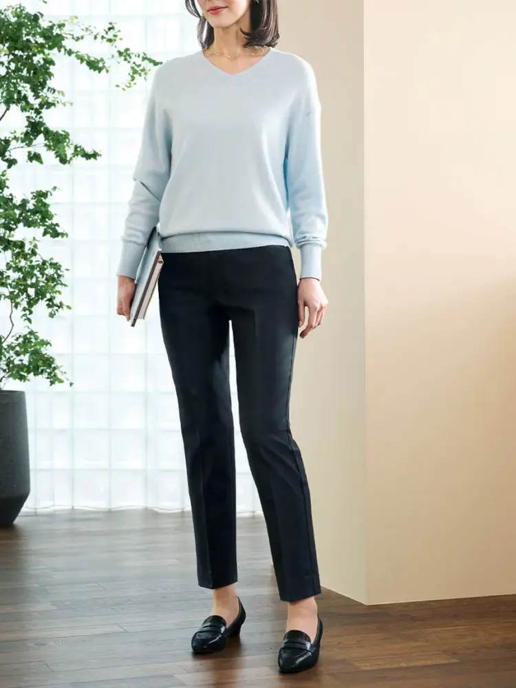 天海さんのような美しさを目指すために重要なのは、無理をして体を締め付けることではなく、自分の体型に合った上質なものを身につけることです。姿勢を正し、颯爽と歩くためには、動きを妨げない伸縮性と、ボディラインを整えるサポート力のあるパンツが不可欠です。