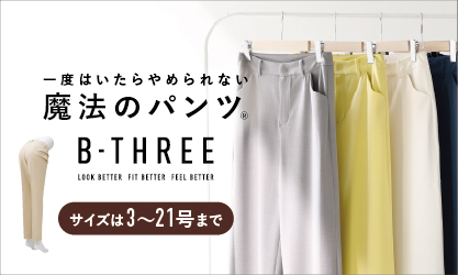 - B-THREEは40代以上の体型悩みを解決する機能性パンツ