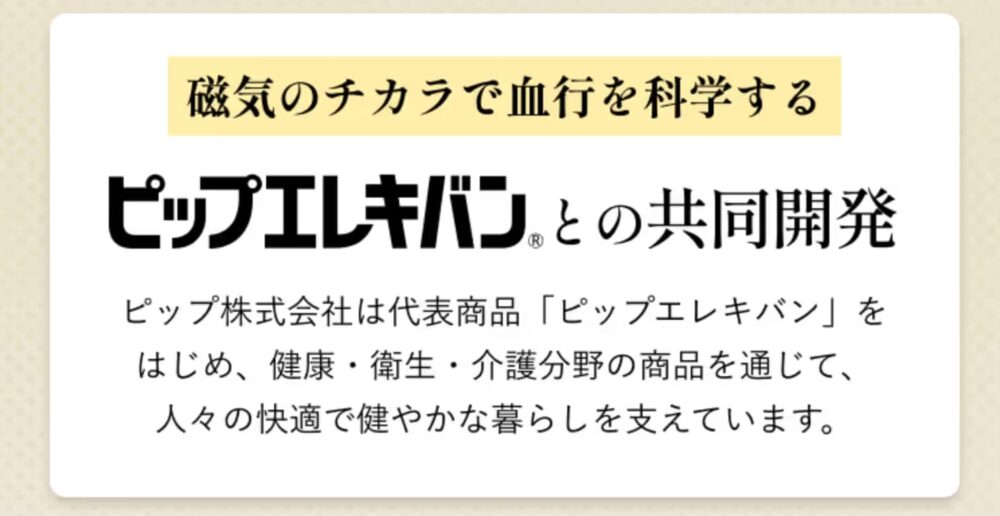 さらに特筆すべきは、磁気治療器のパイオニアであるピップ株式会社と共同開発されているという事実です。「ピップエレキバン」で長年培われてきた技術とノウハウが惜しみなく投入されており、その信頼性の高さは折り紙付きといえるでしょう。