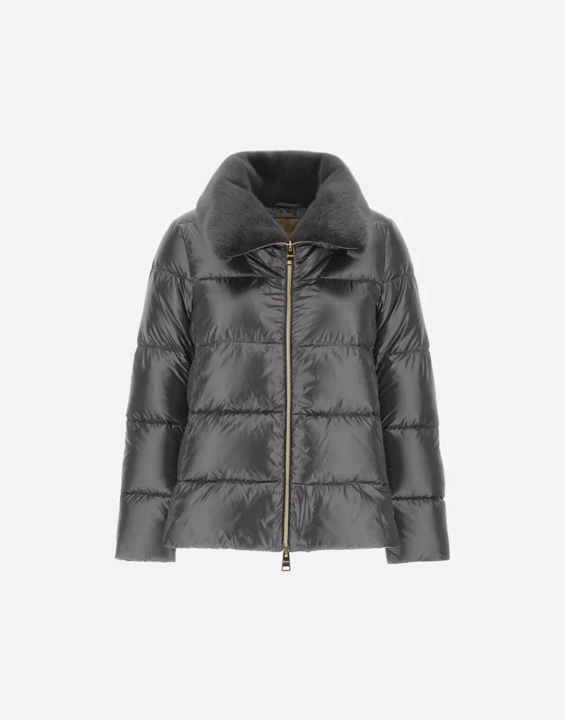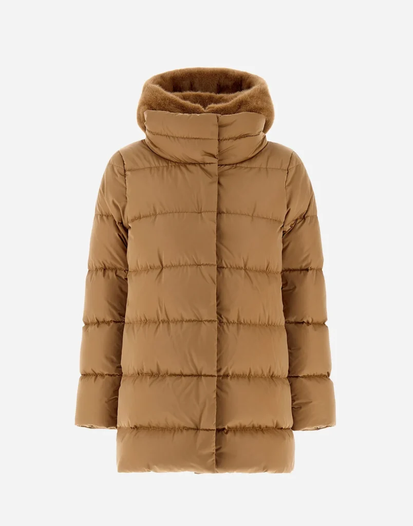 また、超軽量ナイロンと、ウール、カシミヤ、エコファーといった上質な異素材を巧みに組み合わせた「異素材ミックス」のデザインは、ヘルノの代名詞。ダウンのカジュアル感を完全に払拭し、エレガントで洗練された都会的な印象を与えてくれます。