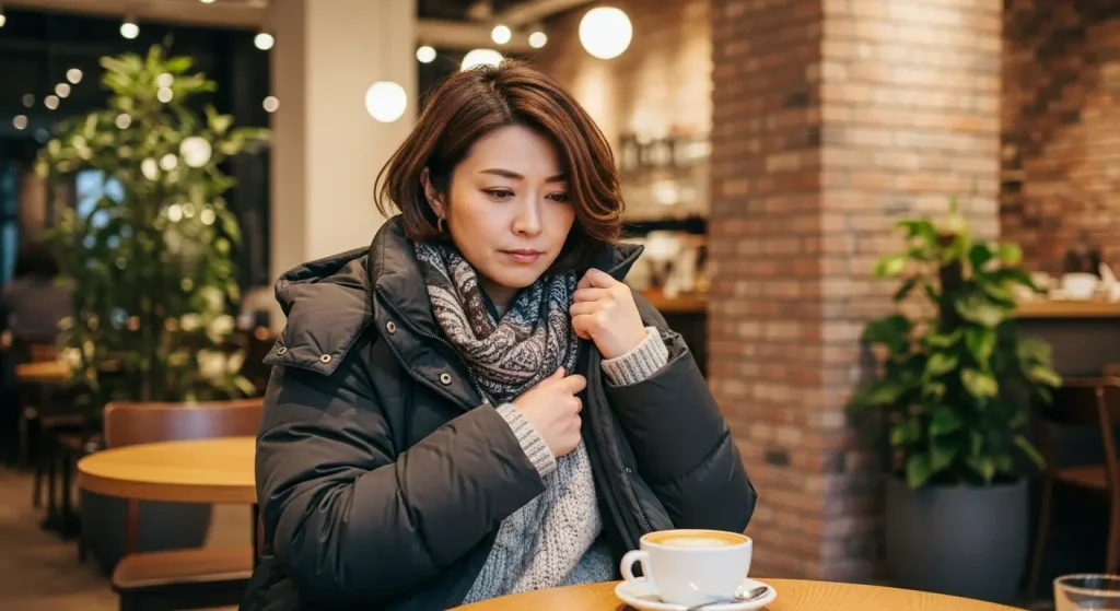 さらに厄介なのが「汗冷え」です。暖房の効いた室内や電車内で汗をかき、その湿ったインナーが外気で急激に冷やされると、体温を一気に奪っていきます。暖かくなるために着込んだはずが、かえって冷えの原因になってしまうのです。