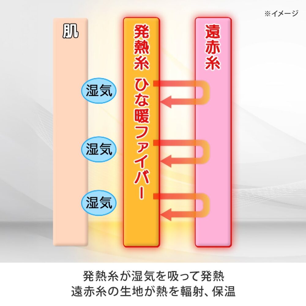 - 自分の湿気で発熱し、その熱を遠赤効果で体に輻射する仕組み