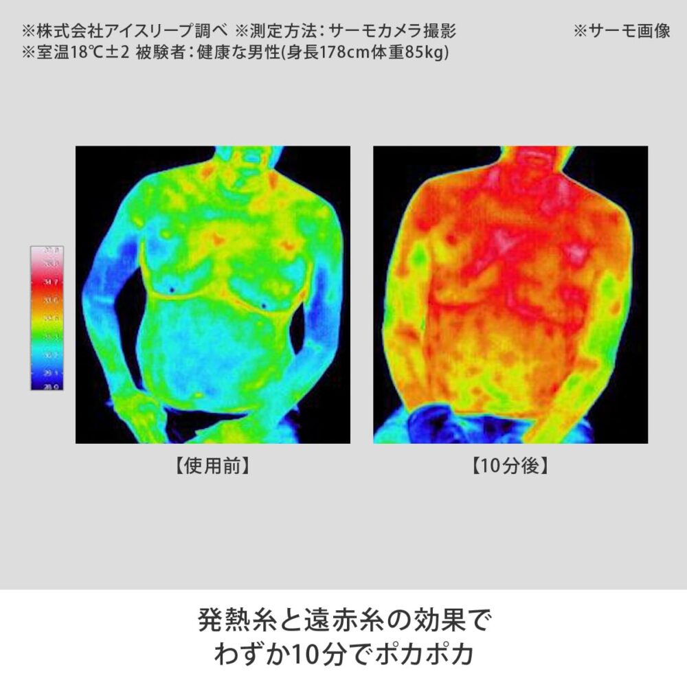 メーカーの公式サイトでは「わずか10分でポカポカ」という情報がありますが、これは前述の吸湿発熱メカニズムによって、着用者自身の力を熱源とするためです。寒い朝、布団から出た後すぐに暖かさを実感できるのは、本当に助かりますよね。