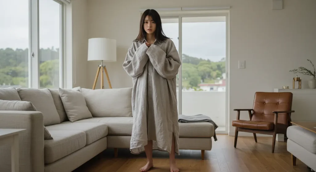 最近トレンドのオーバーサイズのワンピース、ゆったりしていて楽ちんだけど、骨格ウェーブさんが着ると少し注意が必要です。