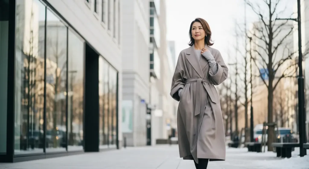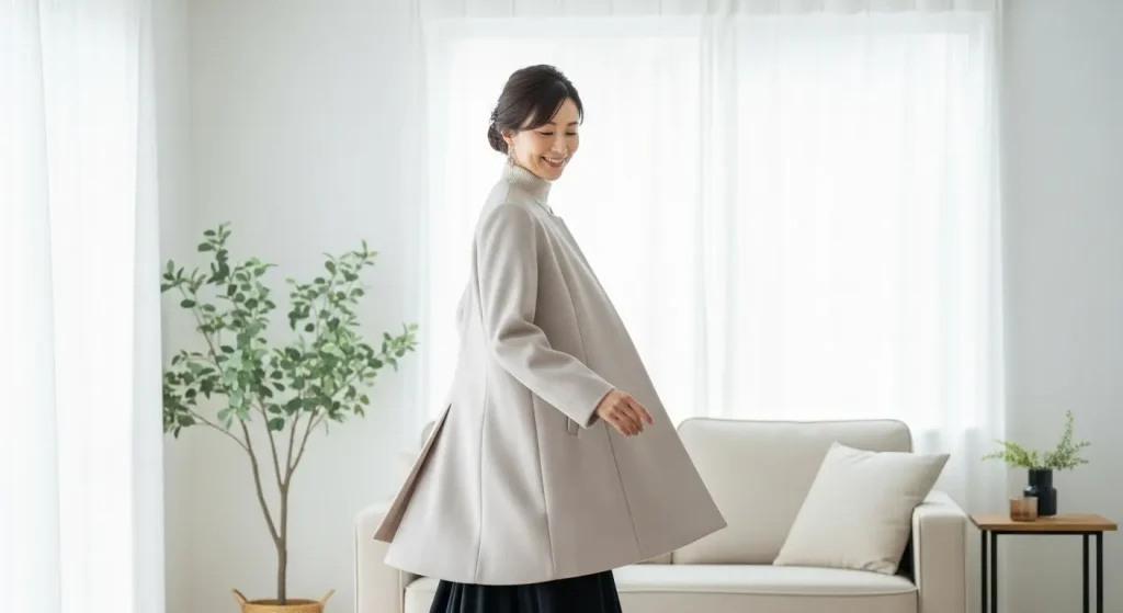 Aラインは、気になる腰回りやヒップをふんわりとカバーしてくれる点も嬉しいポイントですね。逆に、寸胴に見えるボックスシルエットやIラインのコートは、重心がそのまま下がって見えやすいため、避けるのが賢明です。