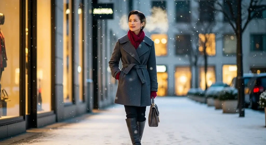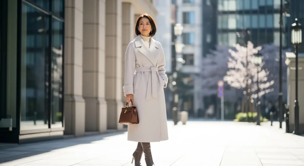これらの「似合わない要素」を持つコートは、絶対にNGというわけではありません。「どうしても着たい!」という憧れのコートもありますよね。そんな時は、選び方や着こなし方で、上手に取り入れる方法があるんです。
