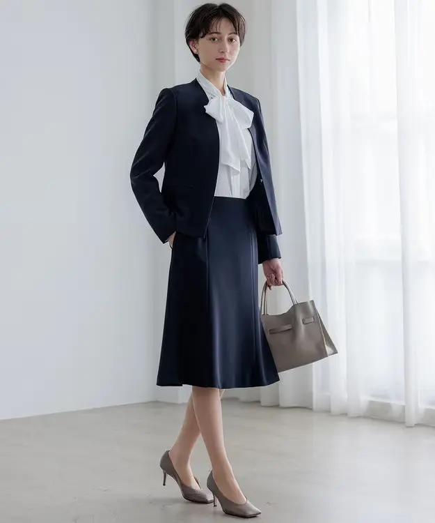 また、就職活動ではシンプルなAラインスカートのセットアップ、入学式などの式典では明るい色のツイード素材のノーカラージャケットなど、シーンに合わせて素材やデザインを選ぶと、より一層素敵に着こなせます。