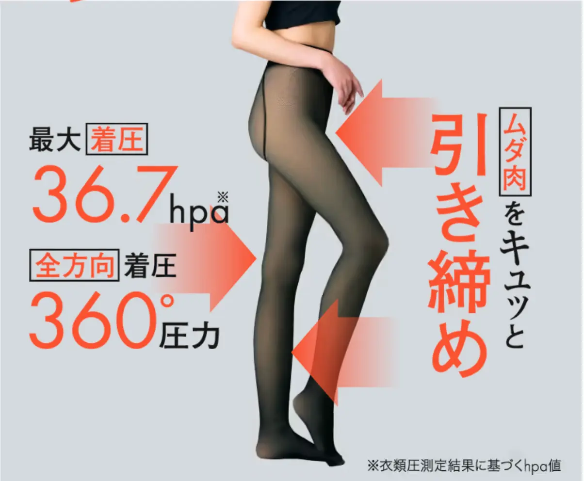 「着太りする」という感想については、1200デニールという物理的な厚みがあるため、元々が非常に細身体型の方や、着圧に慣れていない方の場合、生地のボリューム感が勝ってしまい、期待したほどの細見え効果を感じられない可能性はあります。