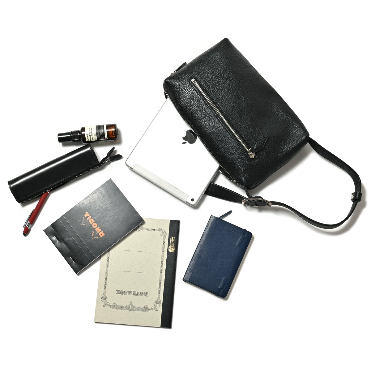 ショルダーバッグとクラッチバッグの2Wayで使えるバッグ。iPad miniなど小型のタブレットや長財布がジャストで収まるサイズです。