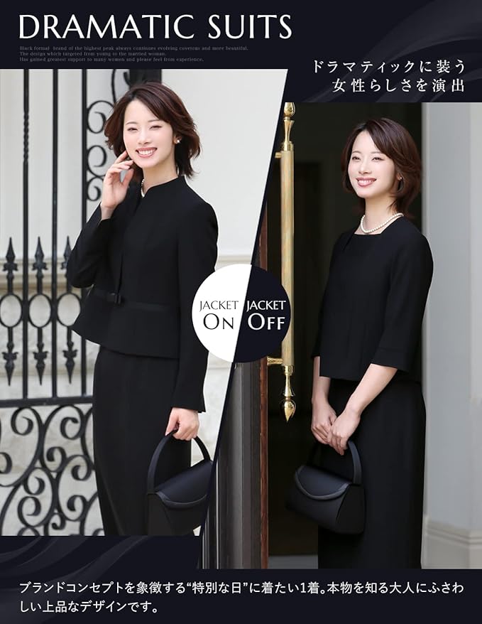 だからこそ、敬意を払う場にふさわしい品格、変化する体型を優しくカバーする着心地の良さ、そして現実的な価格。このすべてを兼ね備えた一着が求められているのです。