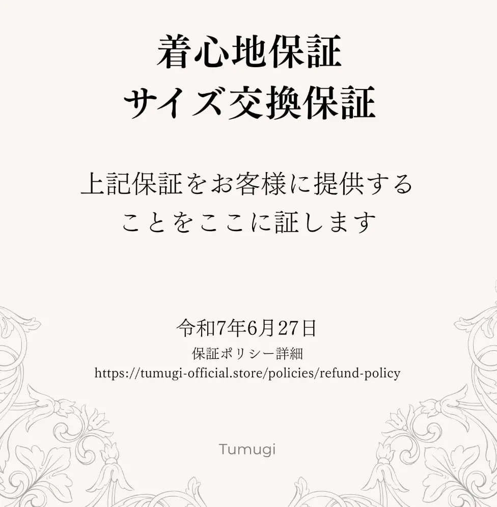 でも、Tumugiはネット通販特有の不安を優しく解消してくれる、日本初の「着心地保証」という画期的なサービスを用意してくれています。
