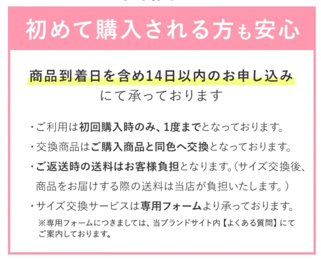 - 公式サイト限定のサイズ交換保証を利用してリスクを最小限に抑える